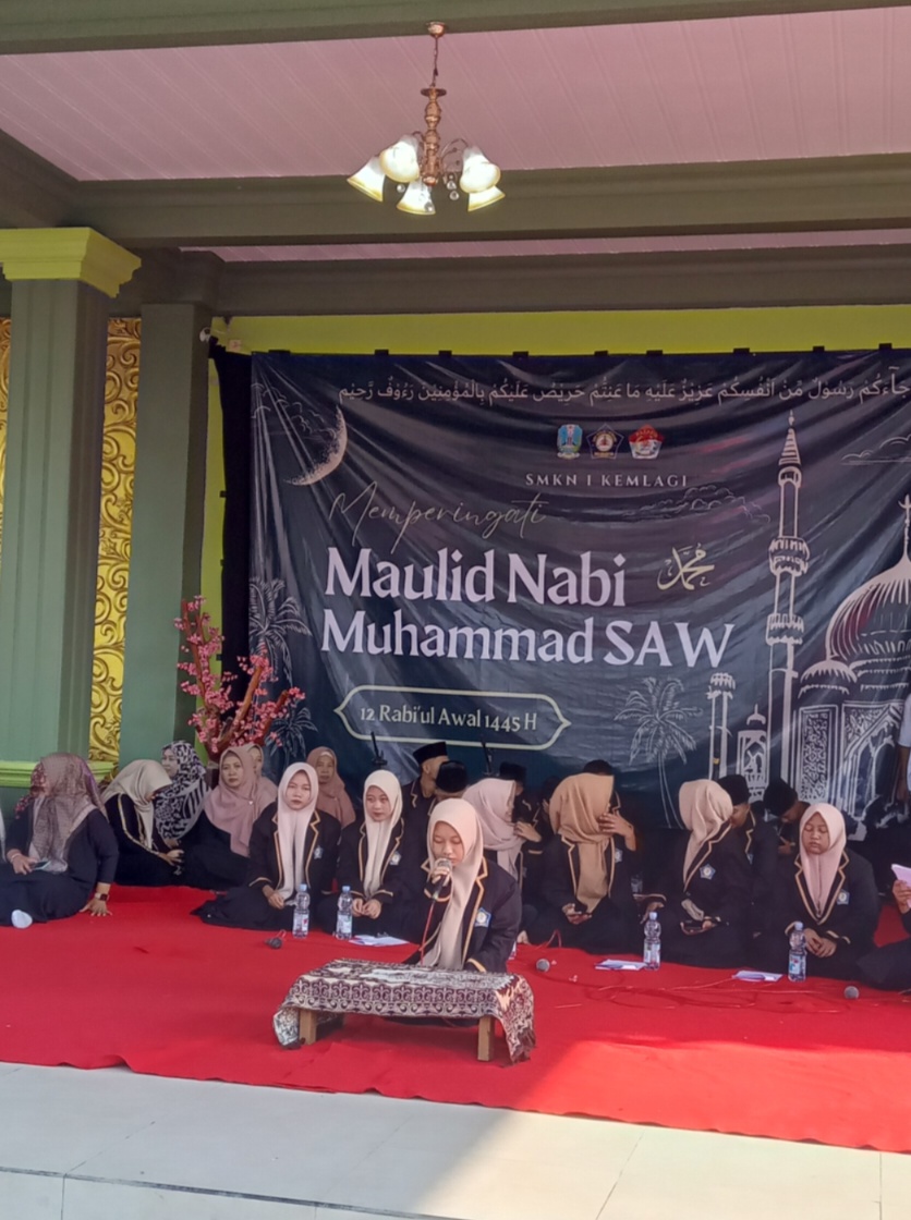Kamis, 18 September 2025 – Hari bersejarah yang penuh berkah, Maulid Nabi Muhammad SAW 12 Rabiul Awal 1447 Hijriah, dirayakan dengan khidmat di halaman Joglo SMKN 1 Kemlagi. Acara yang dilaksanakan dengan penuh semangat tersebut dihadiri oleh seluruh peserta didik, guru, dan panitia yang terlibat.