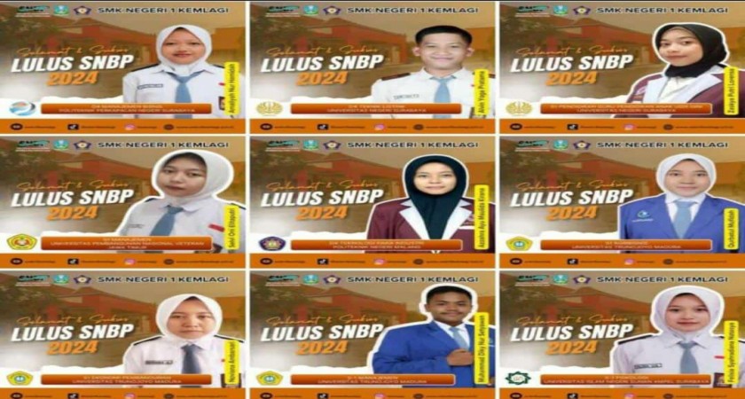 Selamat kepada siswa dan siswi SMK Negeri 1 Kemlagi yang telah berhasil melanjutkan pendidikan tinggi atau melanjutkan pendidikan ke jenjang perkuliahan lewat jalur SNBP, semoga dengan melanjutkan ke jenjang perkulihan bisa mendapatkan ilmu yang lebih banyak lagi serta bisa meraihi cita cita yang diinginkan.