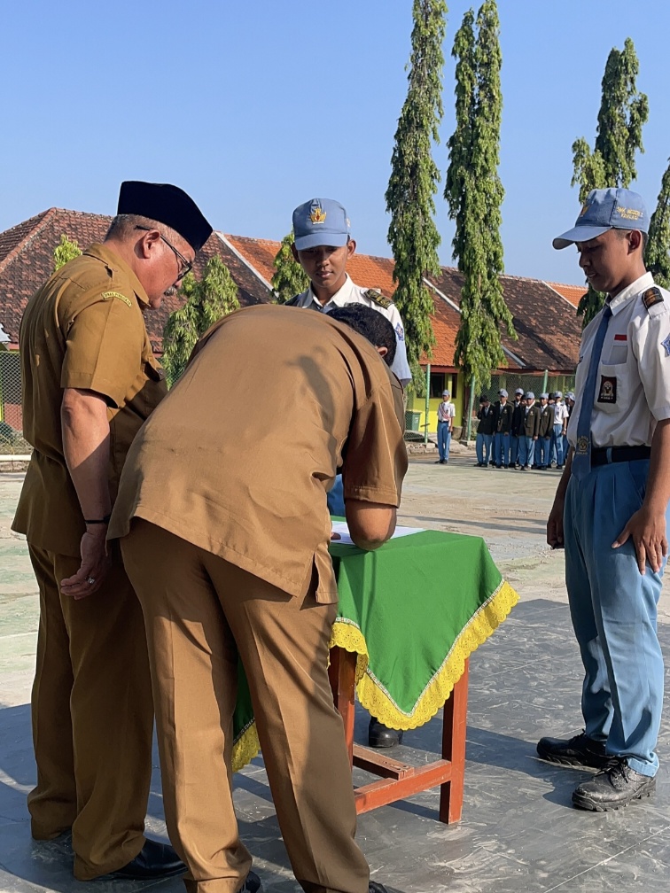 Kemlagi, 22 September 2025 — Apel pelantikan pengurus Organisasi Siswa Intra Sekolah (OSIS) masa bakti 2025-2026 SMKN 1 Kemlagi telah dilaksanakan dengan khidmat pada hari Senin, 22 September 2025. Kegiatan ini berlangsung di lapangan utama sekolah dan diikuti oleh seluruh peserta didik kelas X, XI, dan XII, serta seluruh tenaga pendidik dan tenaga kependidikan.