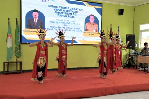Acara dibuka dengan tarian tradisional “Mayang Rontek” yang dibawakan secara memukau oleh peserta didik SMK Negeri 1 Kemlagi. Tarian ini menggambarkan semangat generasi muda dalam melestarikan budaya lokal sekaligus menjadi simbol penyambutan bagi pimpinan baru.