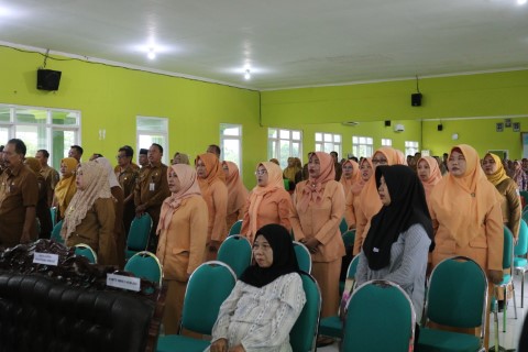 Selanjutnya, hadirin bersama-sama menyanyikan lagu Indonesia Raya dengan penuh semangat. Lagu kebangsaan tersebut dipimpin oleh Ibu Dia Nofita Andriany, S.Pd., Gr. guru Bahasa Inggris, yang bertugas sebagai dirigen. Setelah itu, acara dilanjutkan dengan pembacaan doa oleh Bapak Naim, S.Pd.I., guru Pendidikan Agama Islam, sebagai ungkapan rasa syukur atas terselenggaranya kegiatan dengan lancar.