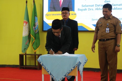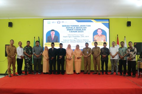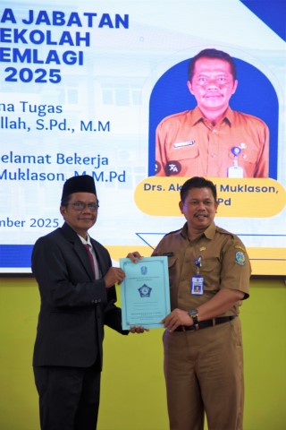 Setelah itu dilakukan penyerahan Surat Keputusan Penunjukan Plt. Kepala SMK Negeri 1 Kemlagi oleh Bapak Mudianto, S.Pd., M.M. kepada Bapak Drs. Akhmad Muklason, M.M.Pd., disusul penandatanganan Berita Acara Serah Terima Jabatan oleh kedua kepala sekolah, disaksikan langsung oleh Kepala Cabang Dinas Pendidikan, pejabat eselon IV, dan ketua komite.